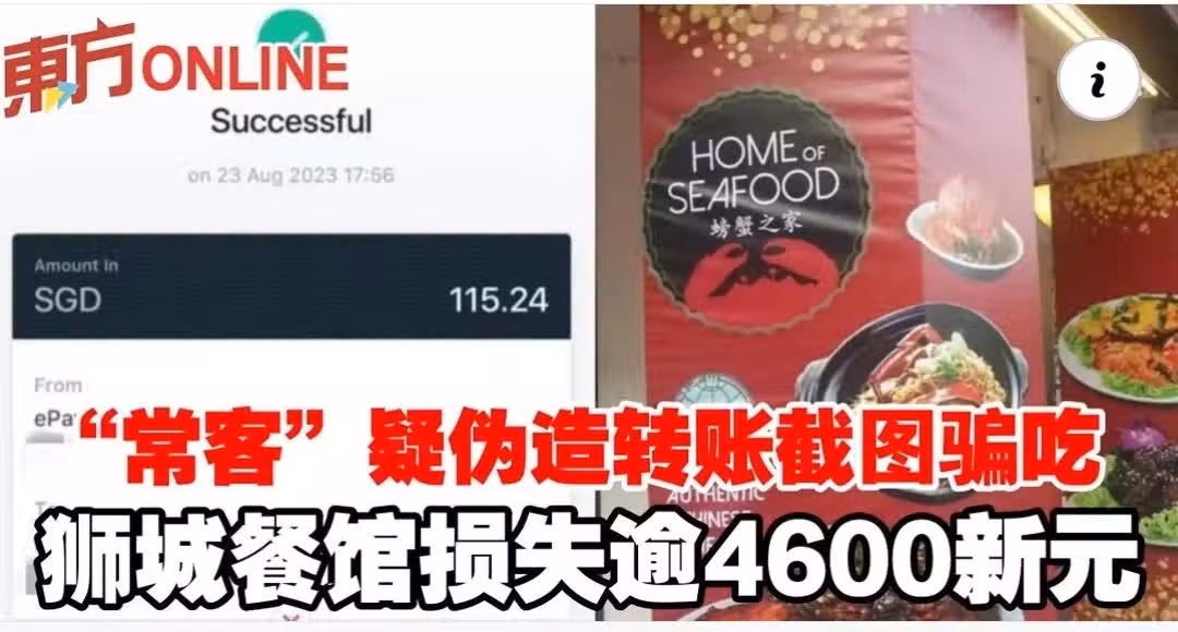 「常客」疑偽造轉帳截圖騙吃 獅城餐館損失逾4600新元
