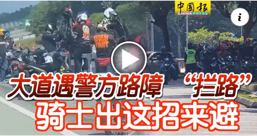 騎士為了逃避警方設置的路障,紛紛將摩哆抬上分界欄,冒死U轉。