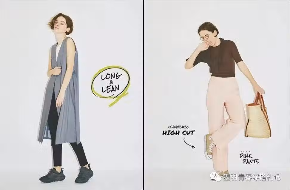 白色打底衫搭配黑色修身長褲和深灰色無袖長款馬甲,深灰色能夠給人一種乾淨而優雅的氣質,不僅能夠拉長整體線條,還可以添加典雅的風韻。右邊選擇了深棕色修身上衣搭配卡其色長褲和運動鞋,簡潔又自然。