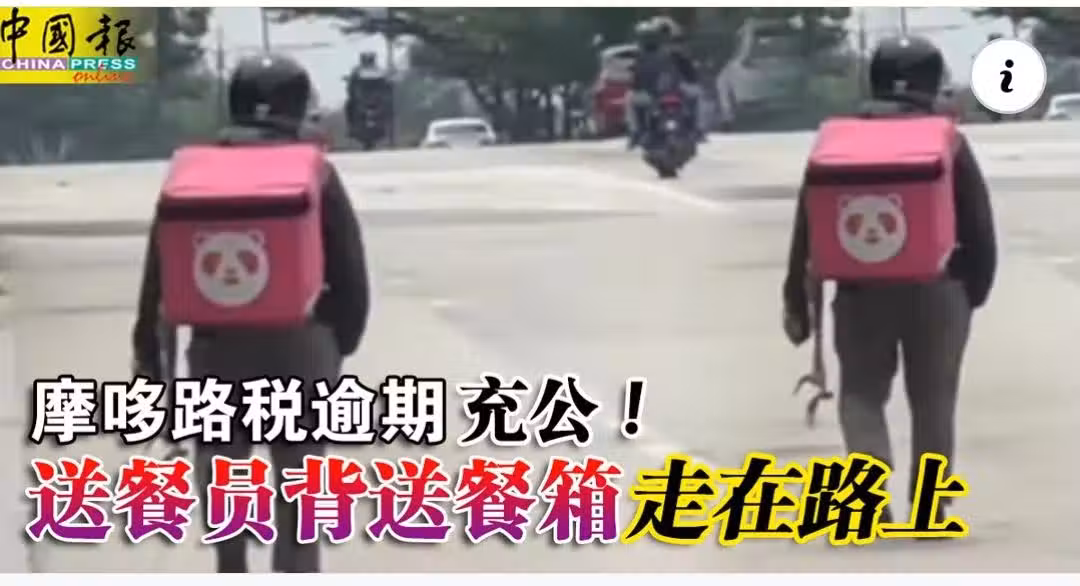 送餐員的摩哆因違例被充公,步行在馬路的畫面引來網民同情。