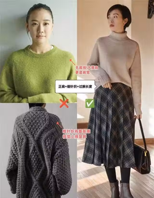 關鍵二、寬肩選毛衣記住:正肩+細針織+過腕袖長