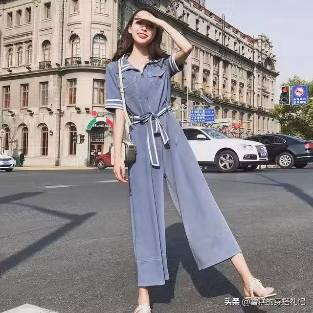 一套淺藍色的闊腿褲套裝很容易變成時髦精,自然清新的色彩十分適合夏天。膚色白皙的女性穿上則會更加顯白,整體帶著淡雅和從容不迫的氣質。腰帶的設計十分顯腰身,可以拉長腿部曲線,顯高顯瘦。