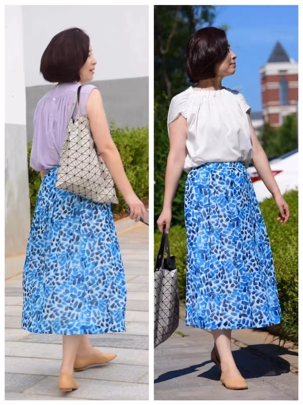 50歲別總穿緊身褲,學這位阿姨百褶半裙搭配,優雅氣質又大方
