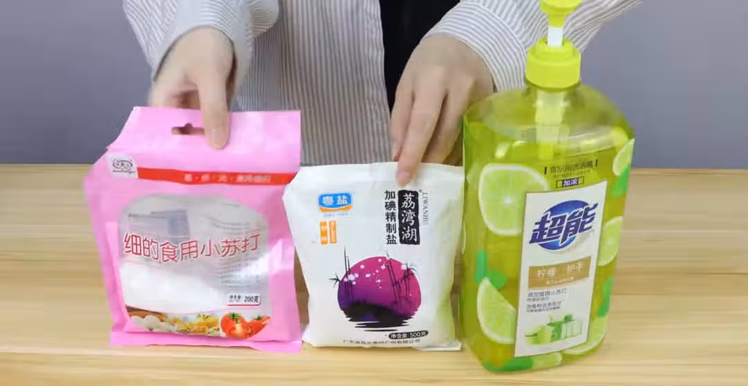 一桶水、一瓶洗潔精、一瓶食用鹼、小蘇打,一把乾淨的拖把。