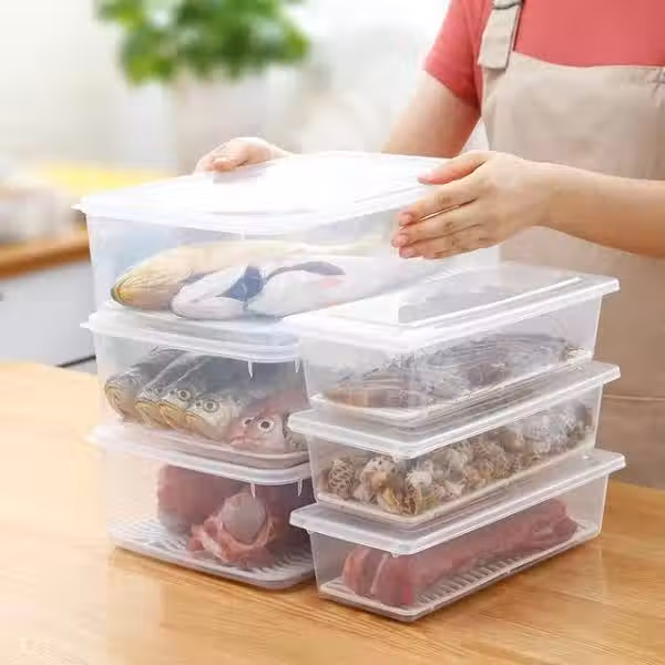 冰箱保鮮盒的密封效果要比塑膠袋好,能夠完全密封,保證味道不外泄,不會和其他的食材串味。透明的保鮮盒,能很清楚地看到盒子裡麵食材的情況。帶有瀝水盤的設計,收納的時候可以瀝掉食材中的水分,延長保鮮的時間。