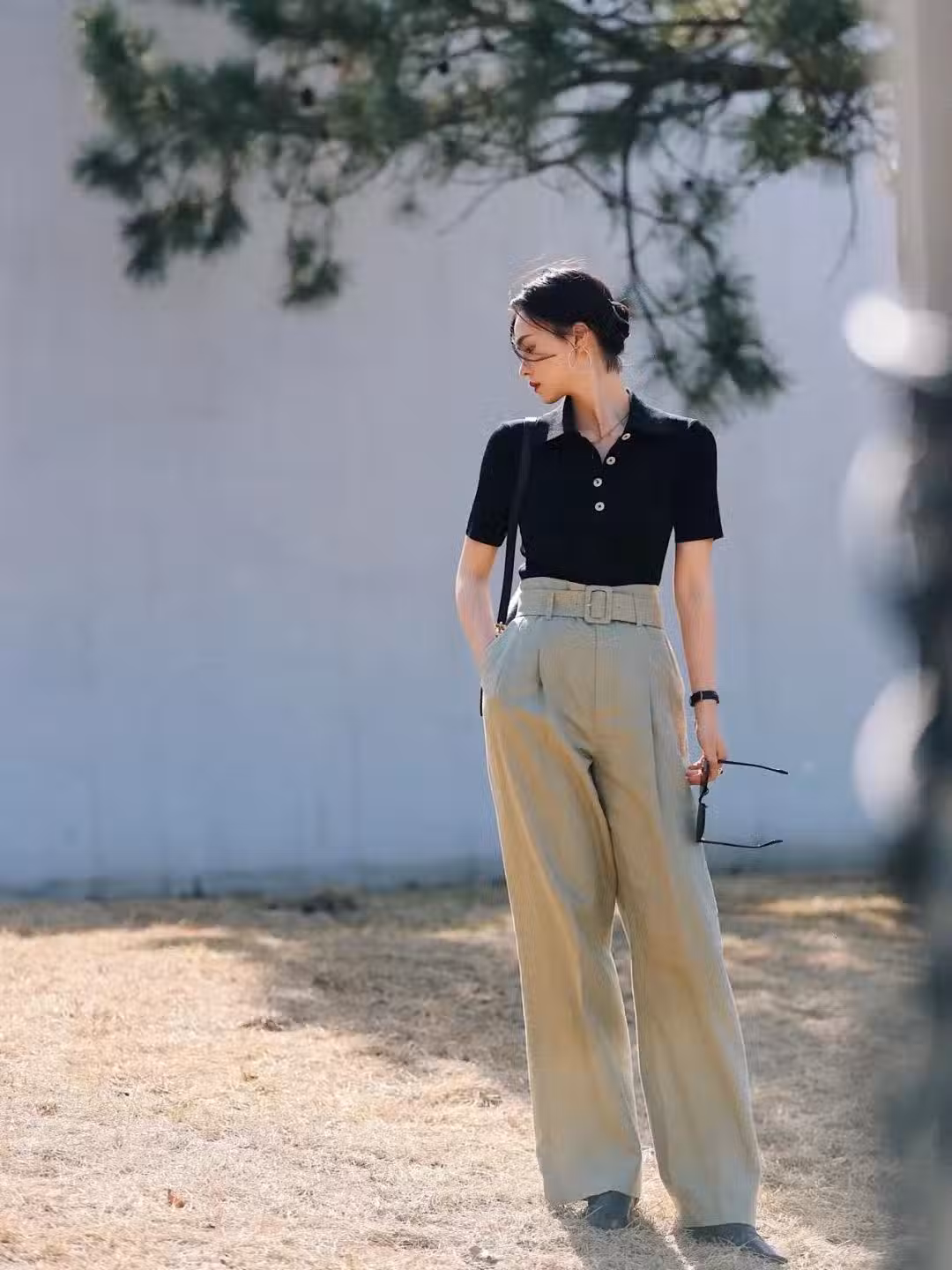 在實際搭配過程中,可以選擇將針織衫扎進闊腿褲中,這樣可以在視覺上提高腰線的位置。另外闊腿褲需選擇高腰款式,因為褲型也能有效地提升腰線。同時,可以使用腰帶來強調腰線,讓身材更加完美。▼