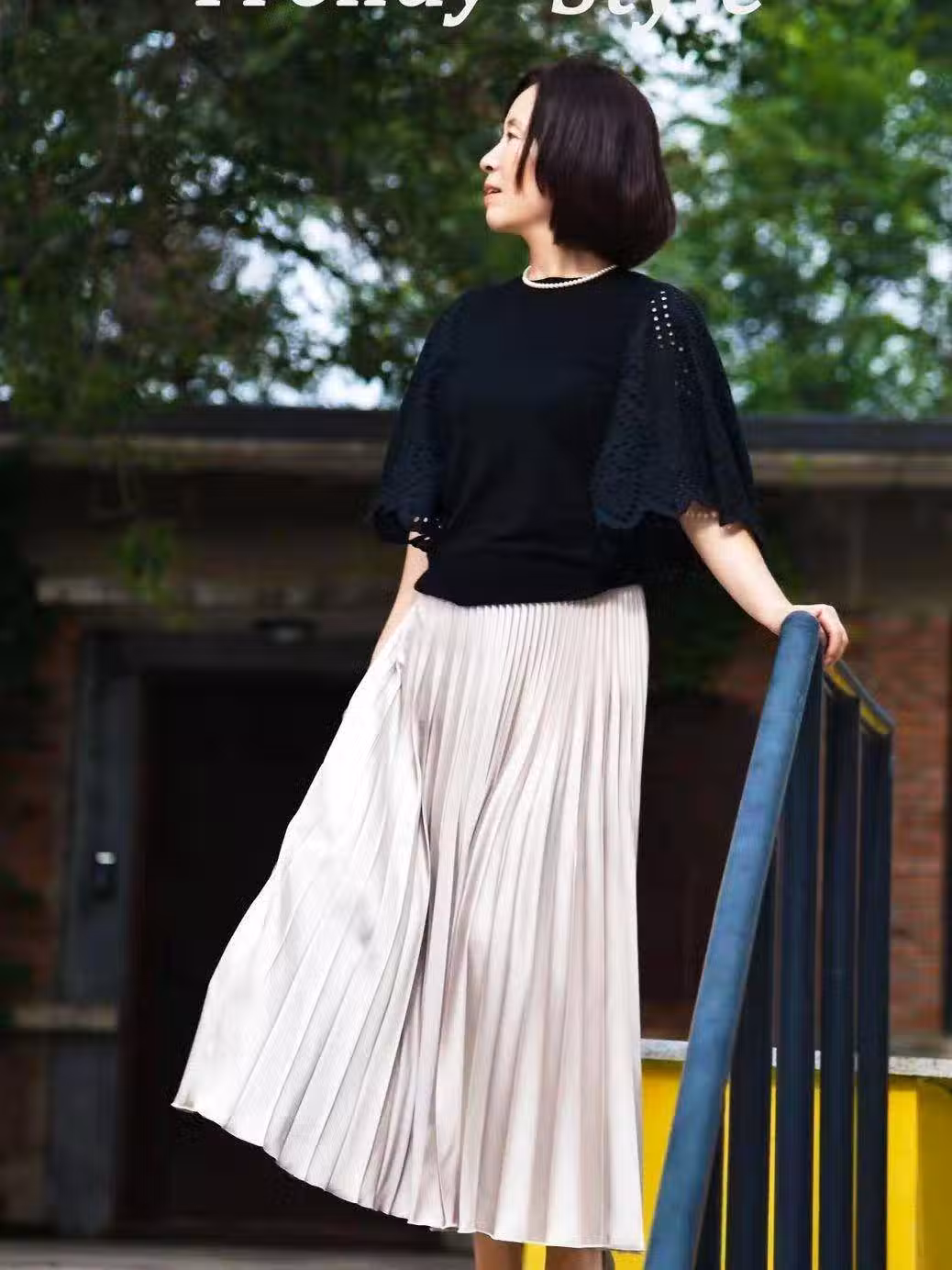 熟齡的姐妹們可以選擇下圖中「黑色上衣+杏色半身裙」的組合,內斂又高級,屬於完全不會出錯的搭配組合。而且暖色調的杏色上身更具優雅溫柔的氣質,比起常規的黑白配更多了一些柔美范兒,美的很高級。