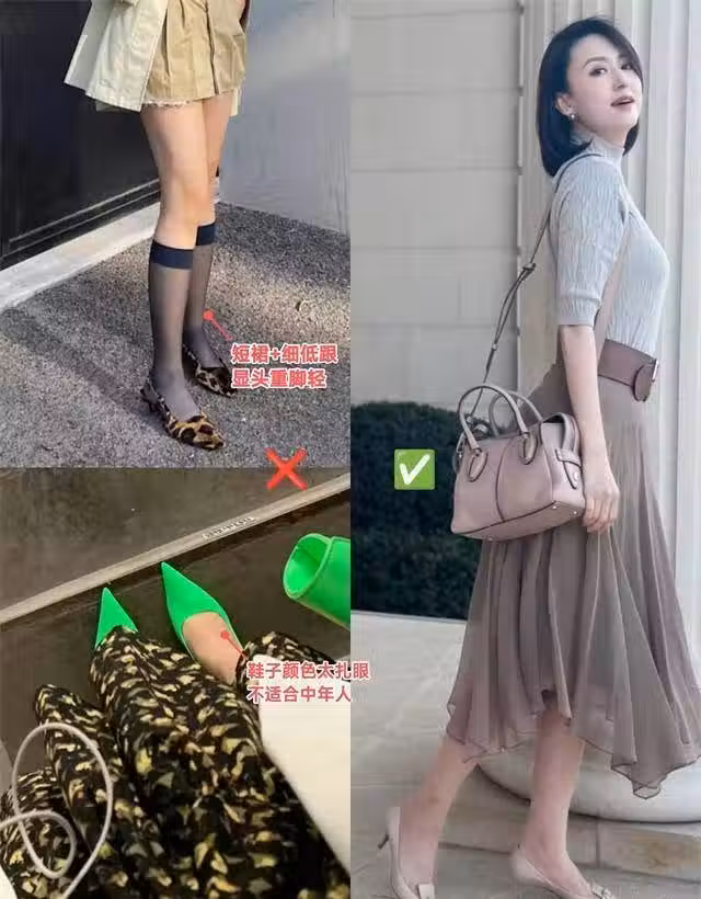 大齡女性的美是要靠自己來創造的,在低跟鞋的搭配上,要穿與整體協調,但又有一定量情感的低跟鞋才行。