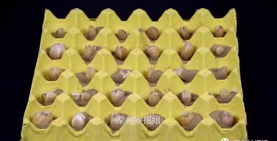這個雞蛋托盤我們還可以用來種植大蒜,在雞蛋托盤上是有很多孔洞的,而且每個孔洞的大小和間隔都是一樣的,它還有一定的深度。我們只需要在每個裝雞蛋的孔洞中都裝上一點泥土,然後將大蒜都掰成一瓣瓣的,將大蒜根部朝下的插進泥土裡就可以了。最後我們把它放在陽台上,然後定期的澆澆水,這樣種植上一段時間,我們的大蒜就會生根、發芽了。