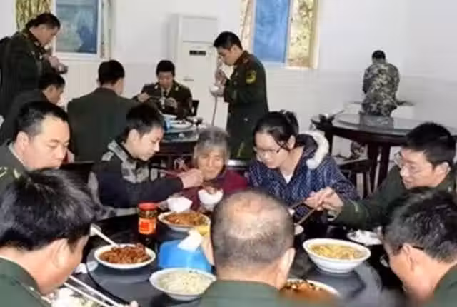 △分宜消防邀請張佳港姐弟和外婆一起來隊裡聚餐