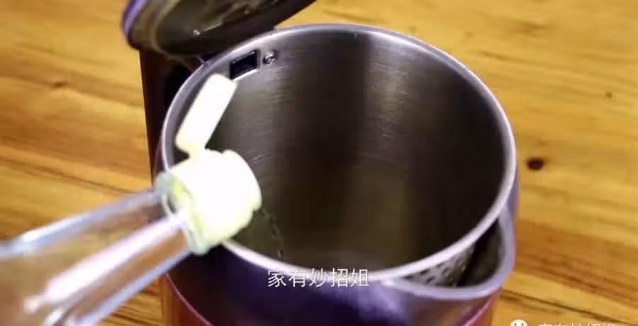 水壺底部產生水垢,其實是一種很正常的現象,是由於水中的鈣、鎂離子沉澱而形成的。可能很多朋友也嘗試去清洗,但普通的方法根本不能將這層水垢去除干凈。遇到這個問題,我們利用上一點白醋就可以解決了,我們先在水壺裡面倒入多一些的白醋。
