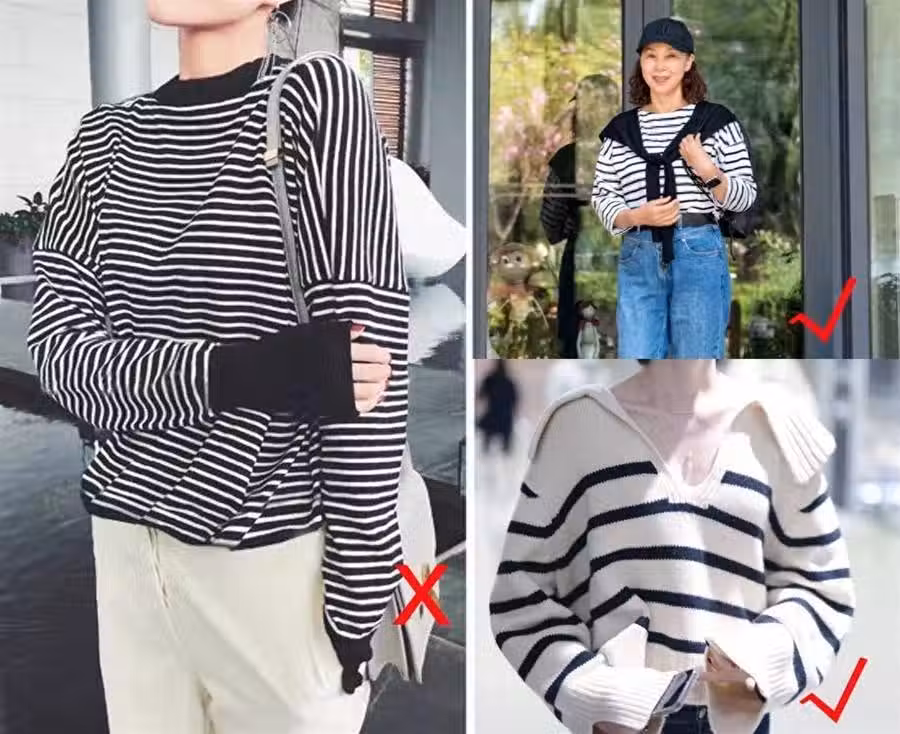 一到秋季復古風就很流行,今年時尚圈裡的復古風條紋針織衫自然也當仁不讓。但是聽我一句勸,選擇帶有條紋的奶奶衫,一定要多選寬條紋,因為你太過細的條紋衫,容易顯得手臂肩更胖和更胖,所以要盡可能多選擇寬條紋,適當的寬條紋距離反而可以隱藏肉,更加藏肉。