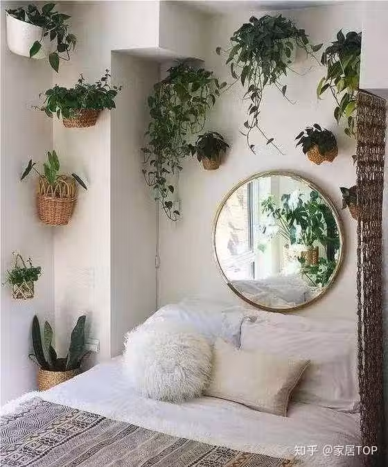 植物雖然可以淨化空氣,但是我是盡量不要放植物,泥土當中會滋生細菌,另外植物白天進行光合作用,夜晚會釋放二氧化碳,雖然產量不是很多,但是在密閉的臥室當中勢必會影響睡眠品質。