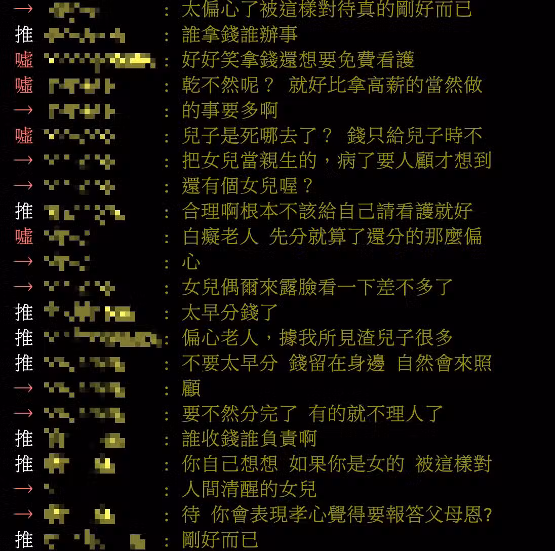 親戚前陣子分財產,兒子各拿3千萬、2女兒沒拿一毛錢,後來親戚病了,女兒卻說:「這是兒子們的事,要照顧得等她有空。」所以,沒分到財產就不盡孝了嗎😠😠