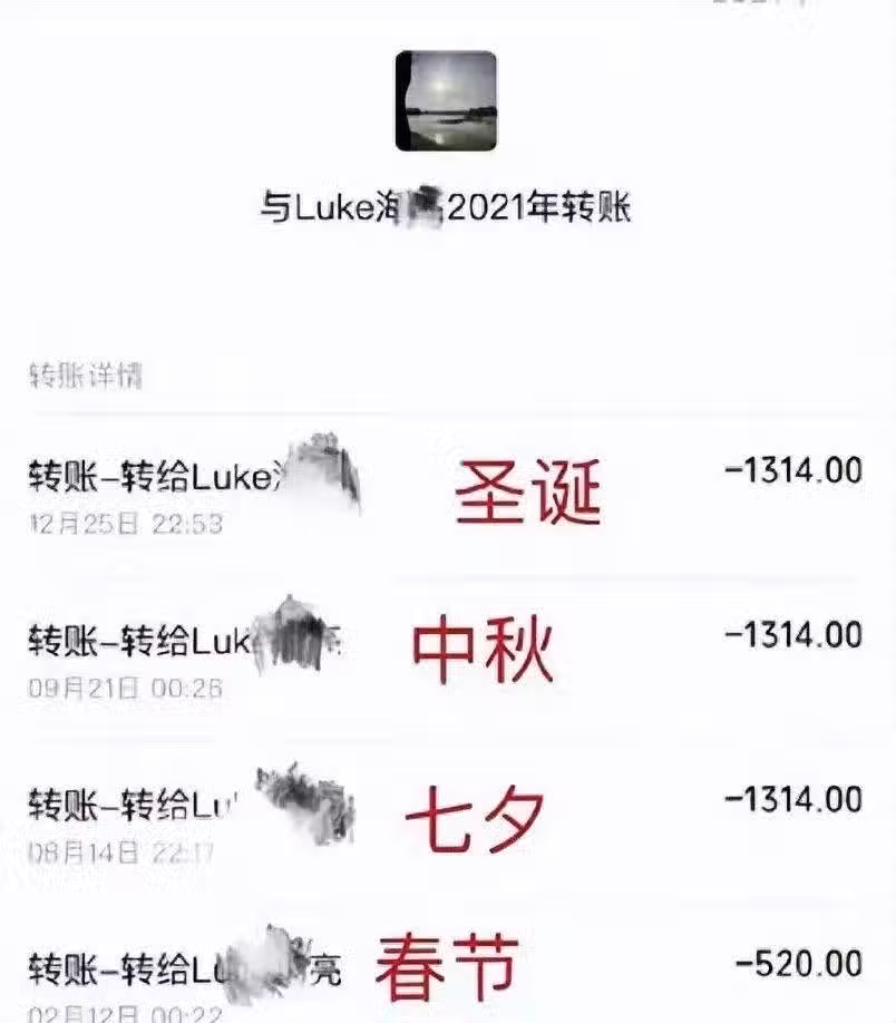 不過吳楚一近些年無一例外數次打錢給陳牧馳,陳牧馳也一一收了,金額包括1314或者520等。