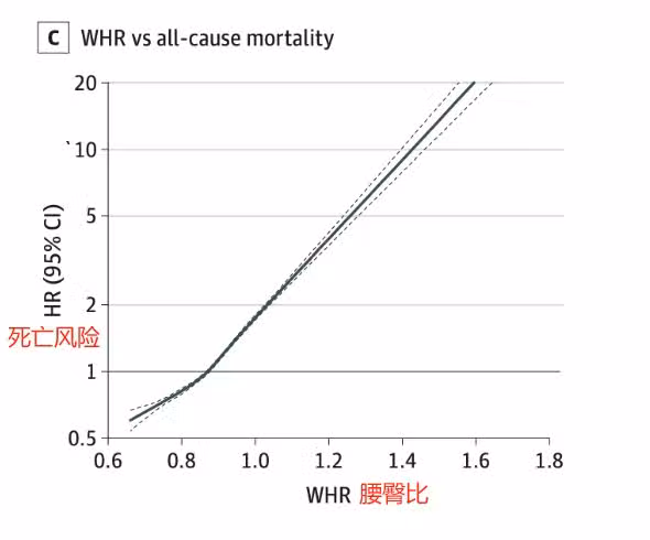 2023年9月,加拿大麥克馬斯特大學的研究人員在網絡公開版的《美國醫學會雜誌》(JAMA Network Open)上發表了一項重要研究顯示:腰臀比(WHR)與全因死亡風險和特定疾病死亡風險之間的關係最強、最一致。