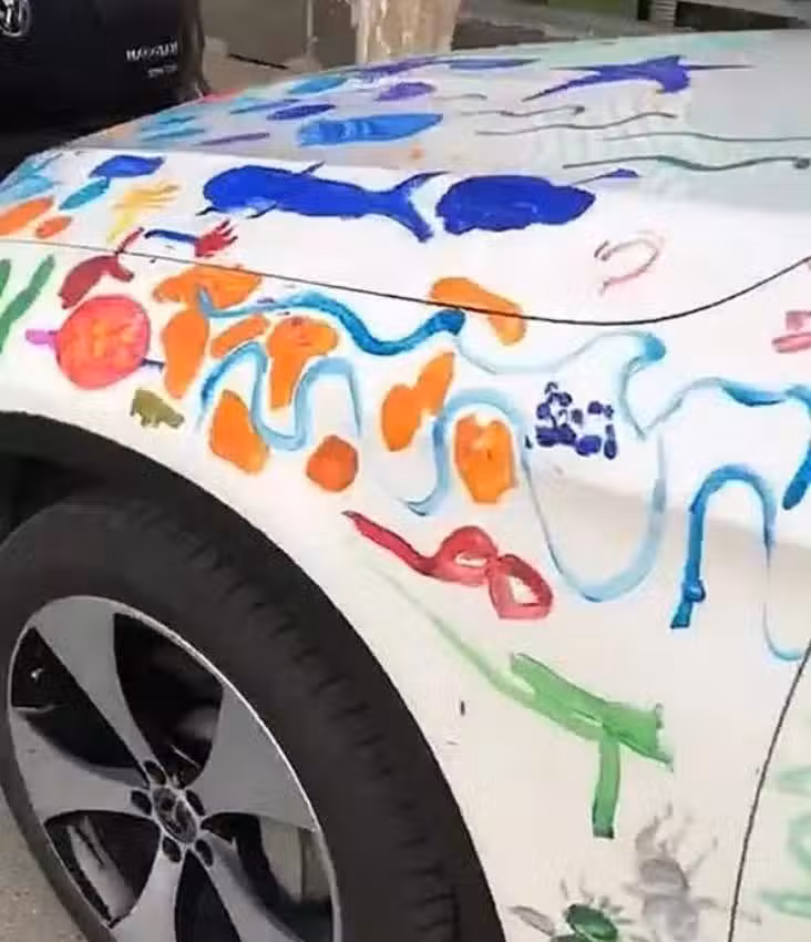 百萬豪車被熊孩子「塗鴉」,車主看到車子後,表示這輩子都不會擦掉