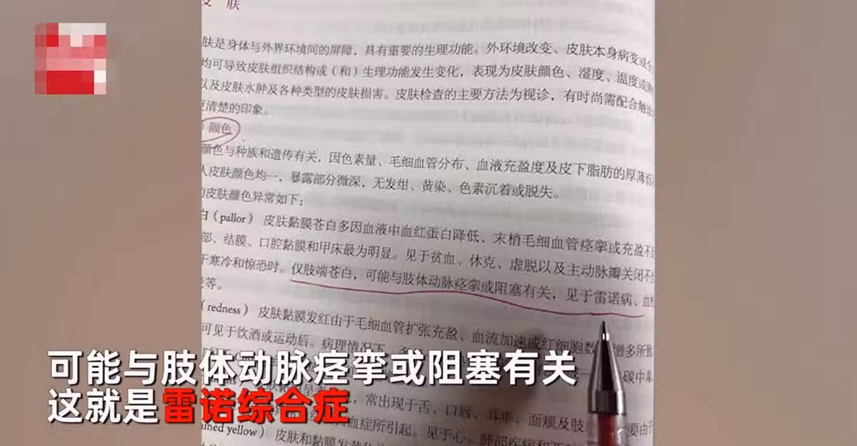 她馬上轉發女子的圖文,並解釋道,這種情況可能與肢體動脈痙攣,或者阻塞有關,是雷諾綜合征,可見於20歲到40歲的女性,尤其是某些結締組織病,還是儘快到醫院看病吧。