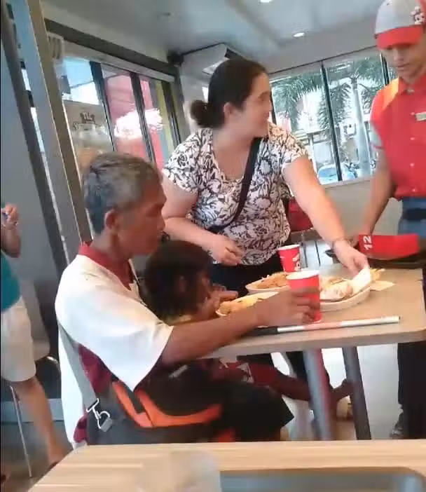 祖孫在速食店行乞!暖心婦一看到「免費請他們用餐」 祖孫含淚道謝「她再現貼心舉動」網超感動