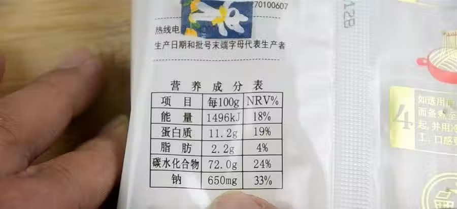 第一種,鈉含量太高的面條,我們要看一下,營養成分表裡面鈉的含量,一般情況下100克的面條裡面鈉的含量不能超過1200毫克,大家有沒有發現即使是清水煮出的面條,也會有一些淡淡的鹹味,這就是因為面條裡面鈉的關系,但是有些商家為了使面條煮出來更加好吃,就會加入過多的鈉成分。