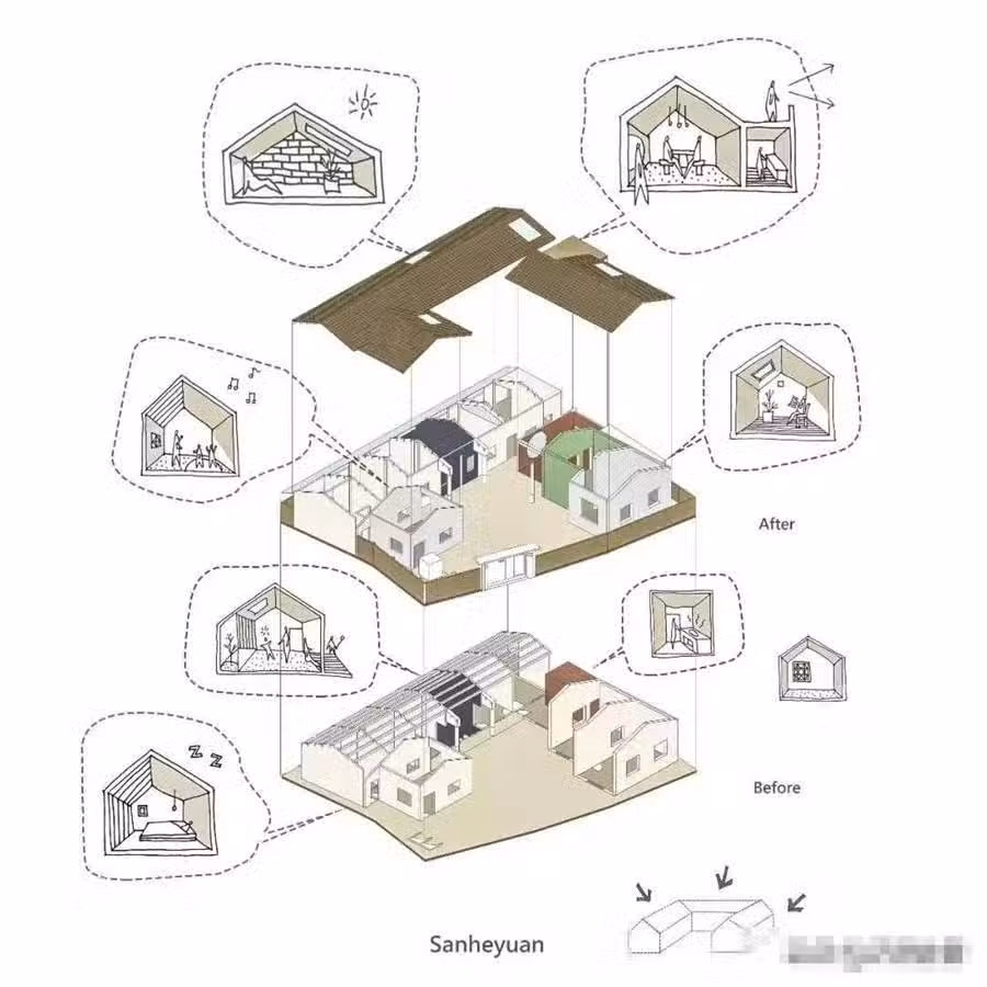 以三合院來說就是房間比較小,公共間很大,像客廳、餐廳、院子這些,都是給家人聚在一起的地方,而且每個房間都朝院子開了窗,大家一探頭,就能看到彼此,家庭關系很緊密,現在的房子幾乎找不到這樣的設計。