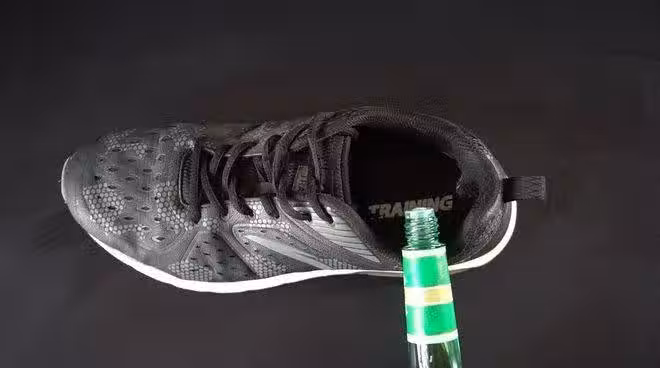 鞋子穿久了,裡面有一股難聞的酸臭。滴幾滴花露水,看還有沒臭味!