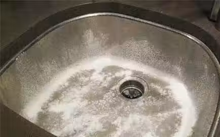 2、然後,在水槽的表面撒上一層小蘇打,加入水弄成糊糊狀。