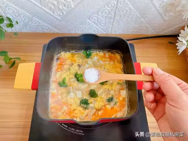 9.咕嘟咕嘟的香味誘人,鮮蝦菌菇豆腐湯做好啦,需要放雞精的可以放一點。