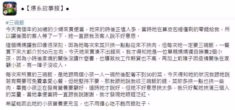 只買3碗白飯!單親2寶媽不敢夾肉「掏空皮夾湊錢」 自助餐老闆含淚「她不願領愛心餐」霸氣出手了~