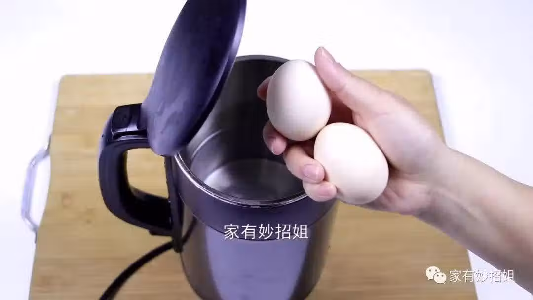 接下來,我們再把清洗干凈的雞蛋直接放在熱水壺中。不過在放置的時候我們要注意,盡量小心,以免雞蛋出現磕破的情況。
