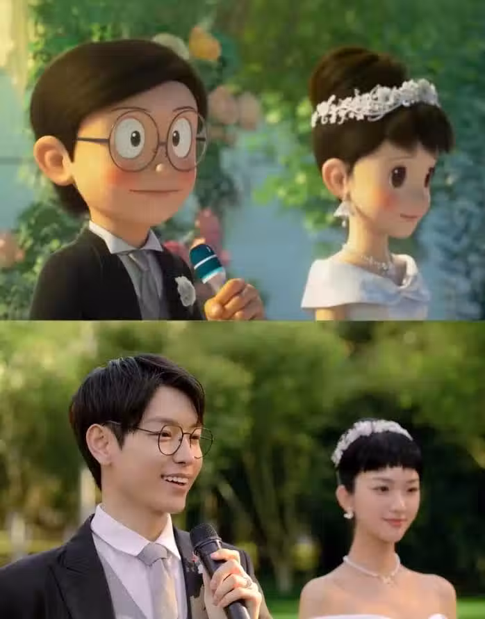 現實版大雄和靜香出現了!「男才女貌」神還原婚禮現場,哆啦A夢放心了