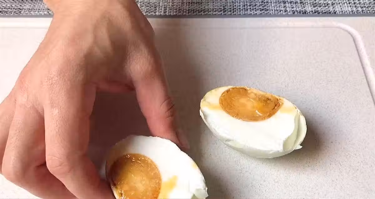 10、鴨蛋保存30天後,我們取出來看一下,把食用鹽給清洗一下,然後我們切開一個看一下裡面的蛋黃還有蛋清,切開瞬間我們可以看到裡面有好多油,做的非常的成功。