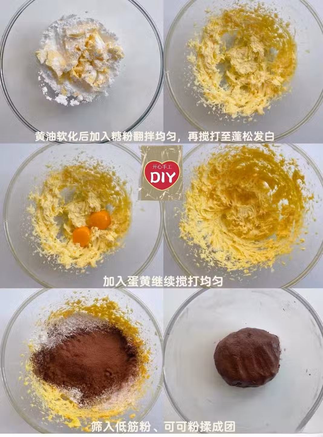 1)黃油提前軟化加入糖粉用刮刀翻拌均勻後打