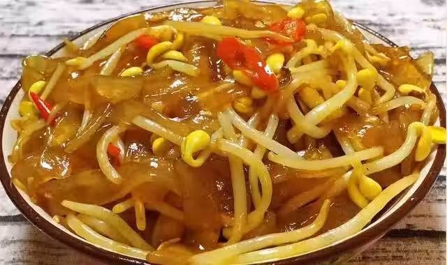 食材準備:黃豆芽、紅薯粉、小米辣、大蒜、生抽、蚝油、食鹽、食用油
