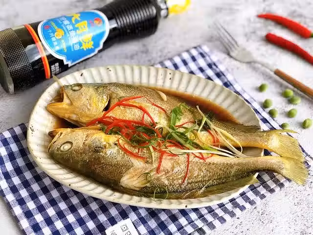製作過程:1、我們準備一點黃花魚,將黃花魚的內臟和魚鱗等處理乾淨,然後用水沖洗乾淨,再用廚房紙巾充分瀝干表面的水分。