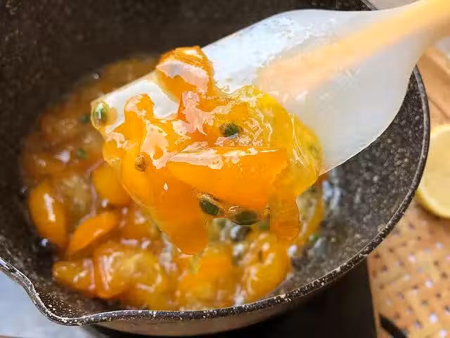 將晾涼後金桔醬裝入密封罐中,將其放入冰箱冷藏,可以保存一個月左右哦。