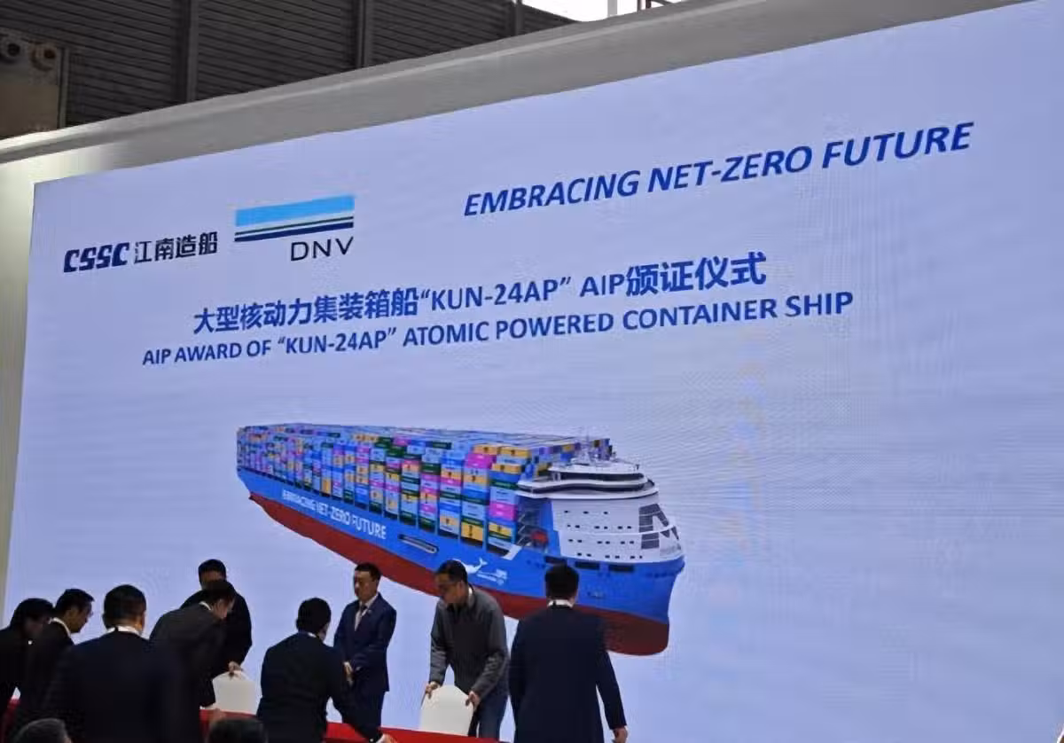 話說就在這兩天,江南造船廠,正式發布了世界最大的「核動力船」設計。這是全球第一款24000TEU級,「核動力」貨櫃船設計。發布當天,DNV船級社,當場頒發了認可證書。