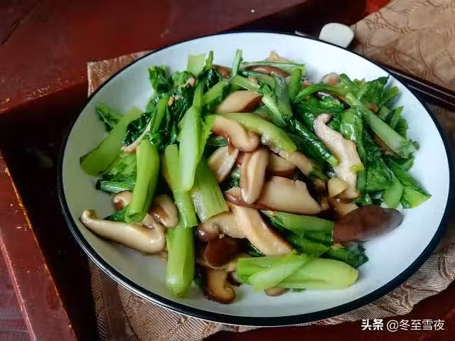 材料:小白菜250克、香菇250克、油鹽適量、蔥1段、姜1片、大蒜2瓣、蚝油1湯匙、