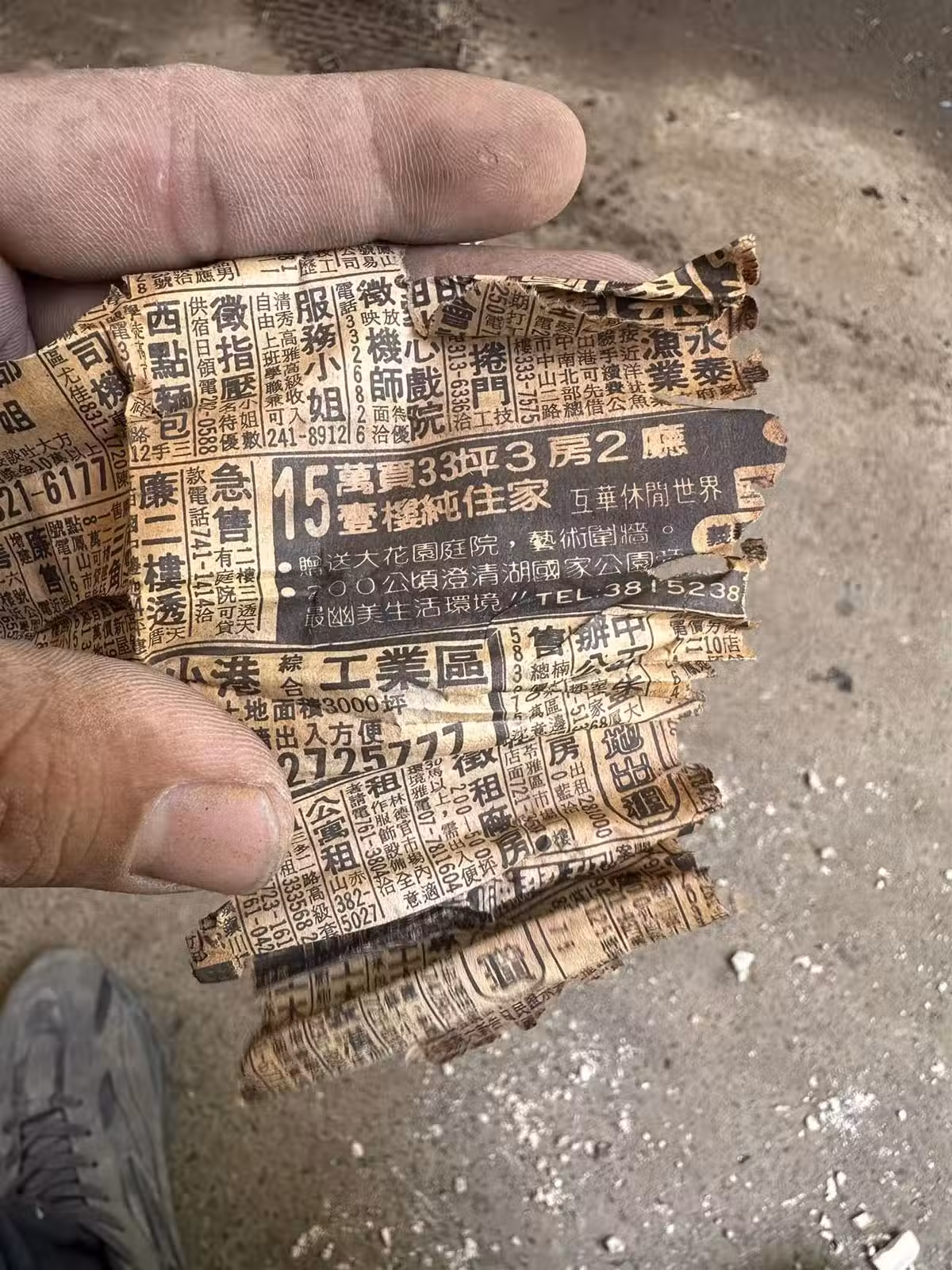 「位於200公頃澄清湖國家公園旁,擁最幽美生活環境。」翻到報紙背面,根據電影上映時間推算,能證明這份報紙是1985年出刊,40多年後的現在,房價已經飆到不堪負荷,引來許多網友回應:「現在1500萬都不一定買得到。」、「現在15萬一坪都買不到。」、「我出生前才有這種價格。」、