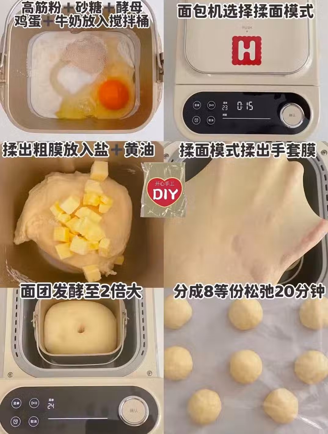 4)放入烤箱35度發酵30分鐘至1.5倍大,表面刷適量蛋液,預熱好的烤箱180度烤15分鐘。