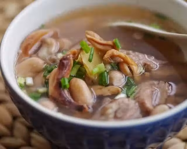 2、撈出洗凈,再用清水泡個5分鐘,去除軟骨和雜質,切成小塊。在加了料酒的沸水中焯一下,撈出沖洗,瀝干水分備用。