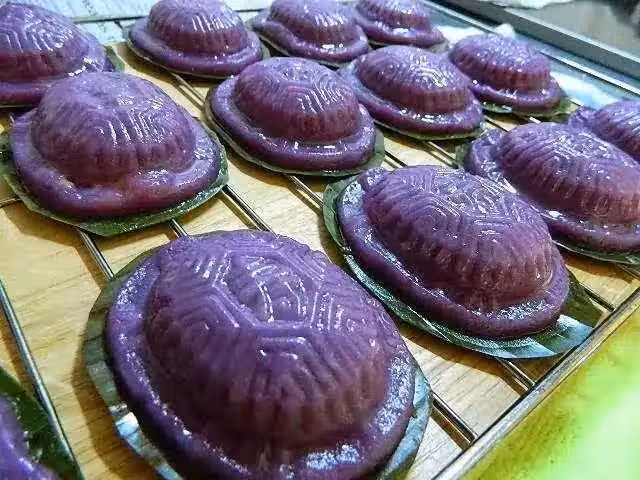 紫番薯泥 100克、細砂糖 1湯匙、清水 125克(注意番薯泥的濕度慢慢加入)、糯米粉 200克、食油 1湯匙