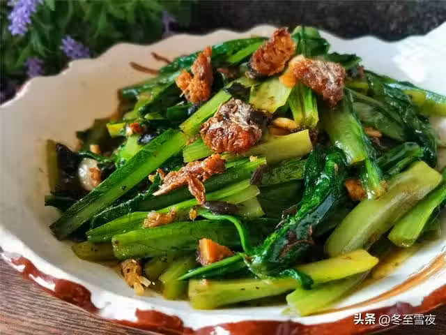 【豆豉鯪魚油麥菜】所需材料:油麥菜400克、豆豉鯪魚罐頭半盒、油適量、大蒜3瓣、蚝油半湯匙、