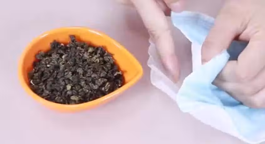 過期茶葉不要扔掉了,可以放在紙巾上面做一個茶葉包,放好之後把紙巾包裹緊一點,隨後拿出橡皮巾給它綁緊就好了。