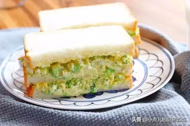 這款三明治不需要烤,也不需要煎,是在雞蛋沙拉中加入了西蘭花,如此既能保持清脆的味道,又能提高營養價值,是一款只要有雞蛋和西蘭花就能馬上出盤的超簡單的早餐。