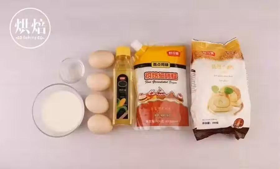 玉米沙拉油 44g、 低筋麵粉 72g、 烘焙細砂糖 52g 、雞蛋 4個 、牛奶 80g 、檸檬汁 適量