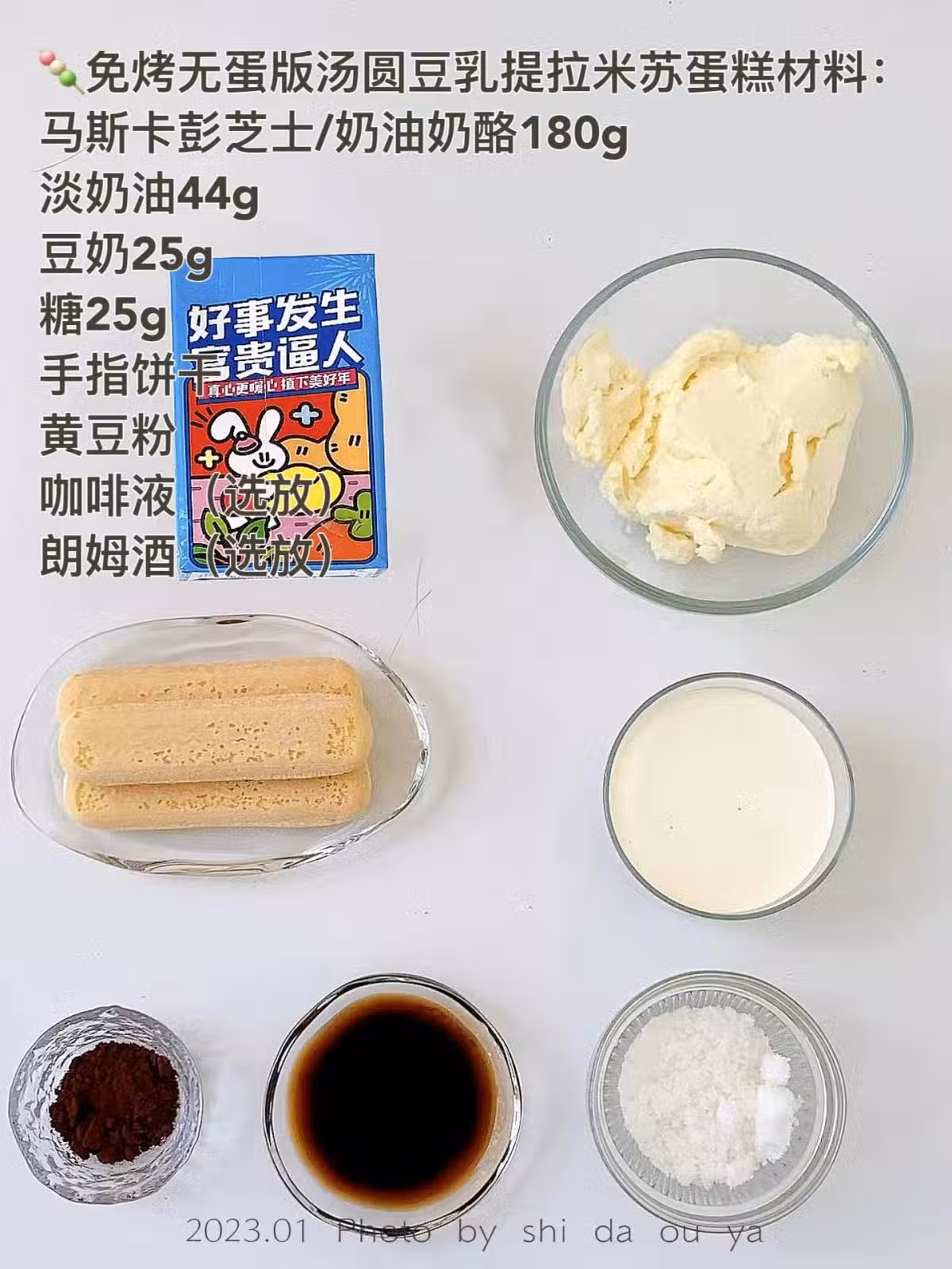 🟡免烤無蛋版湯圓豆乳提拉米蘇蛋糕材料: