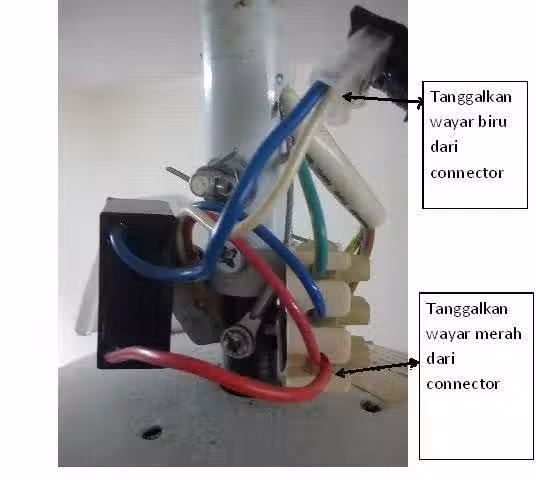 4.接下來,把連接電容器的藍色和紅色電線給拆除掉。