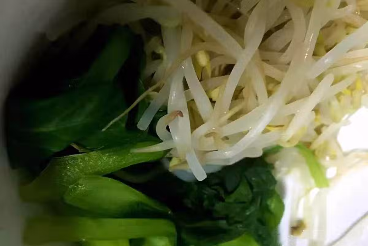 第三步,處理配菜,配菜的選擇,可以根據個人喜好,我這裡準備了綠豆芽丶白菜和胡蘿蔔。豆芽、白菜清洗乾淨裝盤備用,胡蘿蔔切成細絲。