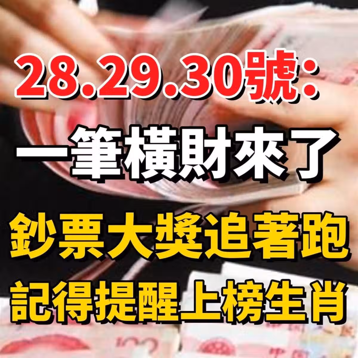 28.29.30號:一筆橫財來了,鈔票大獎追著跑!